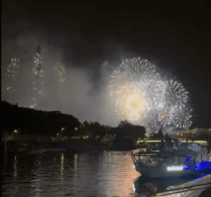 写真は7月14日 セーヌ川クルーズから見るパリ祭の花火